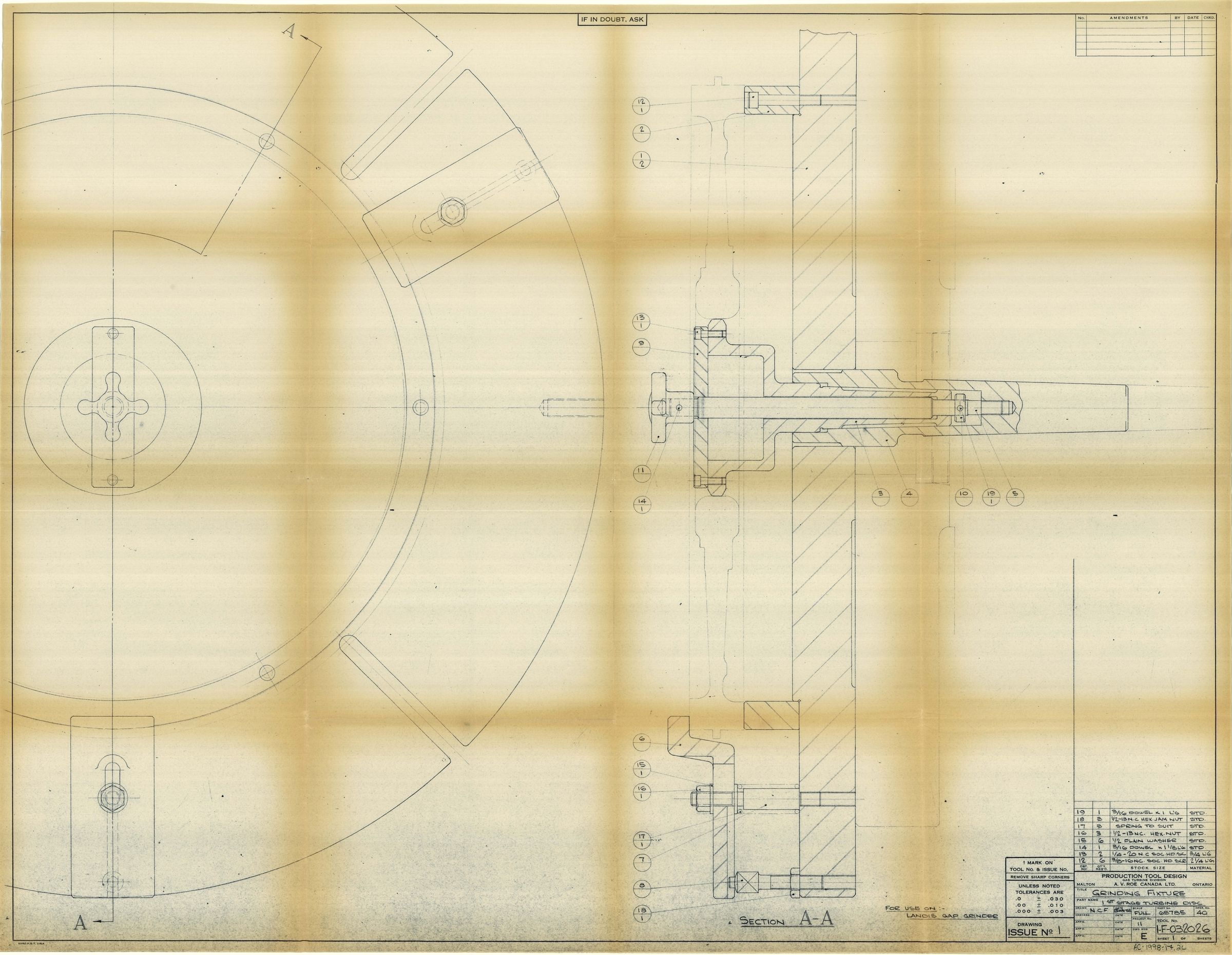Grinding Fixture-1st Stage Turbine Disc - Tool 1-F-032026, Sht 1