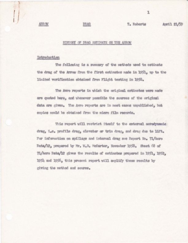 History of drag estimate on the Arrow