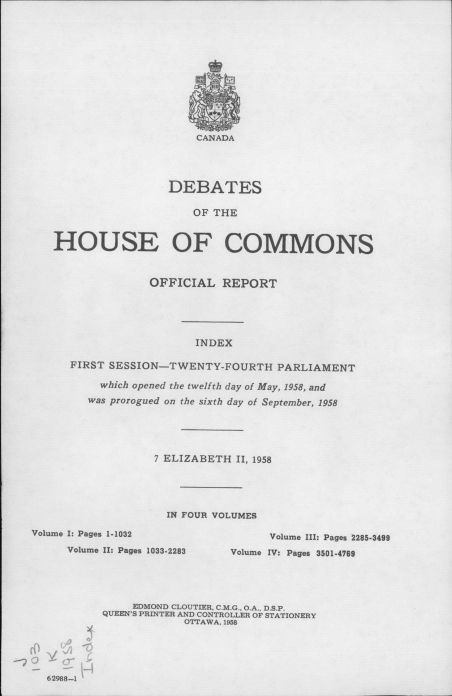 HOC Debates Index May 12 to Sept 6, 1958Entry/Object ID