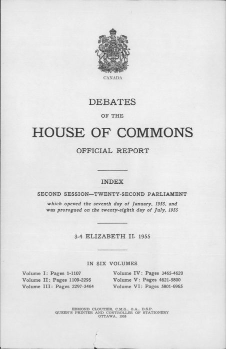 House of Commons Debates Index Jan 7 to July 28, 1955Entry/Object ID