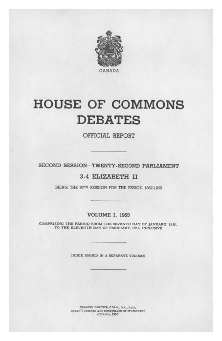 House of Commons Debates Vol 1, Jan 7 to Feb 11, 1955Entry/Object ID