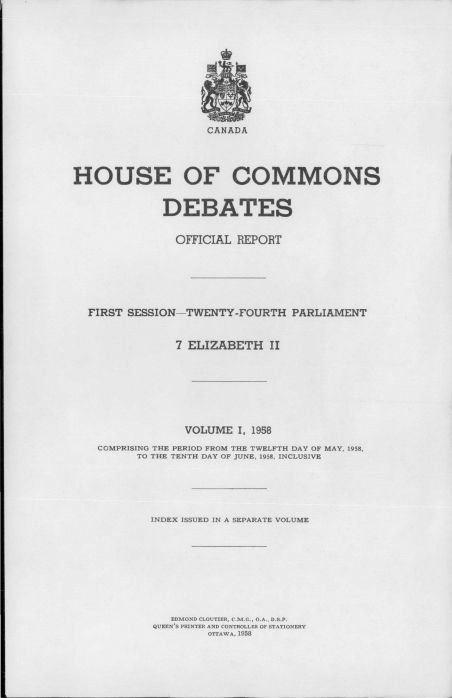 House of Commons Debates Vol 1 May 12 to June 10 1958Entry/Object ID