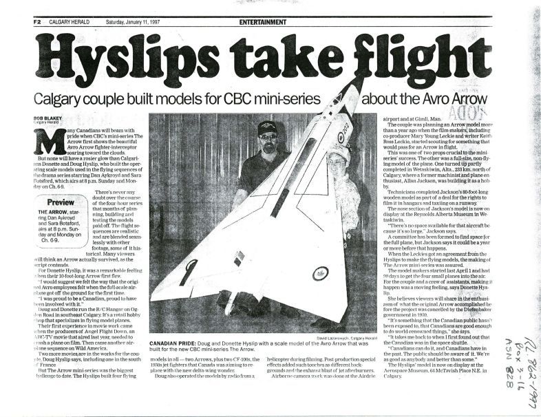 Calgary couple built models for CBC mini-series about the Avro ArrowPublication Details