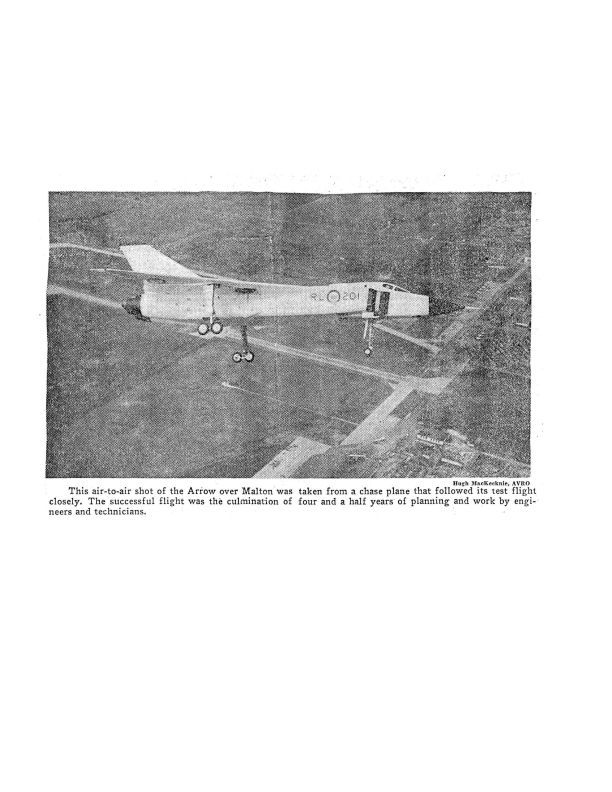 Image of wheels down Arrow 201 in flight over Malton