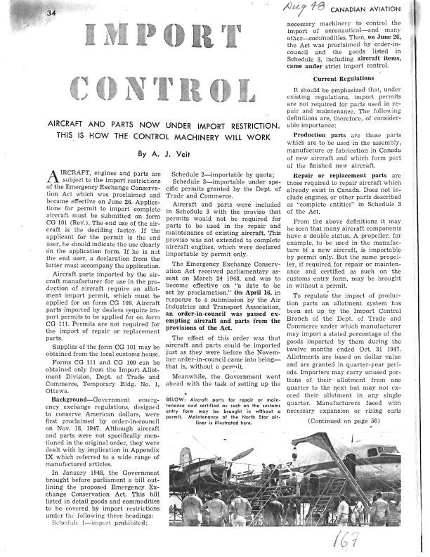 Aircraft and parts will be under import restrictions