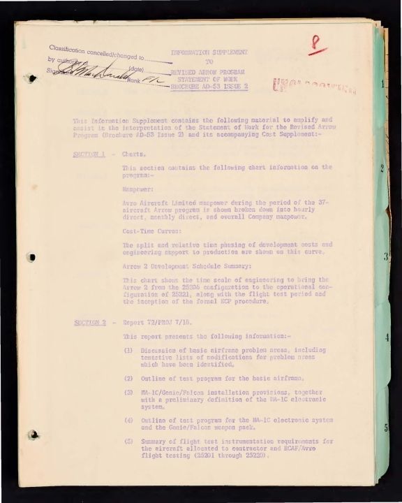 This Information Supplement contains the following material to amplify and assist in the interpretation of the Statement of Work for the Revised Arrow Program (Brochure AD-53 Issue 2) and its accompanying Cost Supplement.