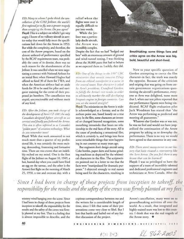 Floyd discusses Arrow, Canuck, Jetliner, the movie, and people involvedPublication Details