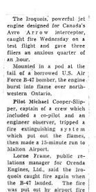 Fire onboard B-47 (CL-52) with Iroquois while in flight and upon landing. Names include T.P. Michael "Mike" Cooper-Slipper, Lorne Frame.General Notes