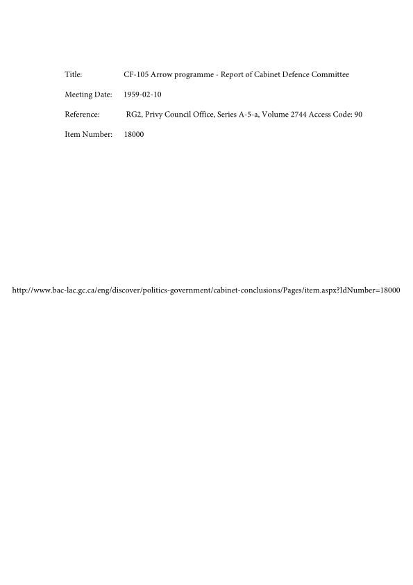 CF-105 Arrow programme - Report of Cabinet Defence CommitteeGeneral Notes