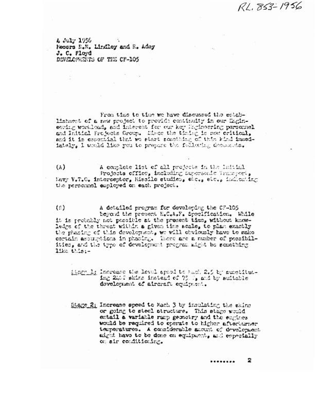 JCF letter to Lindley and Adey re: Developments of the CF-105