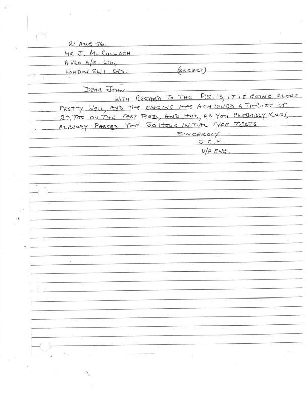JCF letter to McCulloch - re: P.S. 13 engine