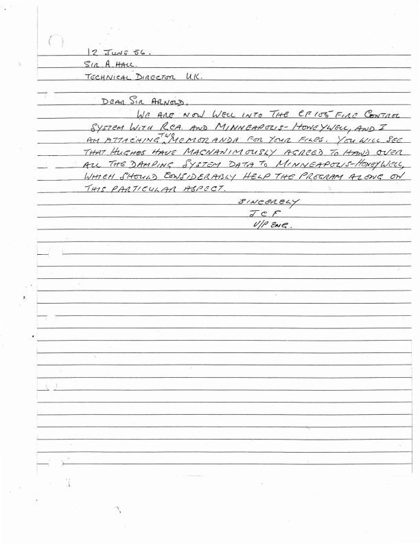 JCF letter to Sir A. Hall - Re: fire control system
