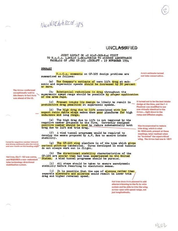 Summary page - N.A.C.A. comments on the CF-105 design problems.