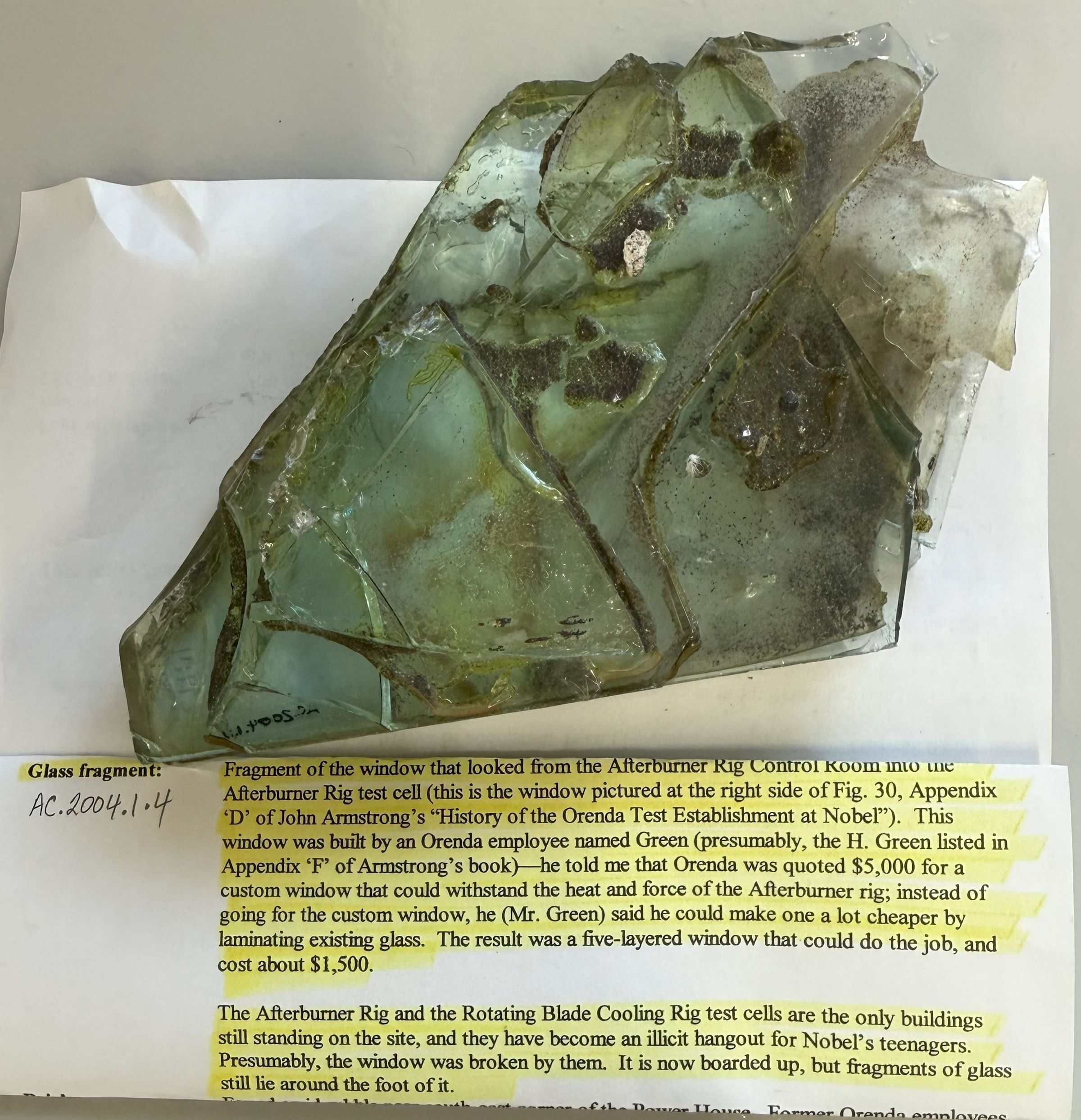 Laminated glass from the Orenda Nobel Test Facility - Afterburner Rig Control Room to Afterburner Rig Test Cell