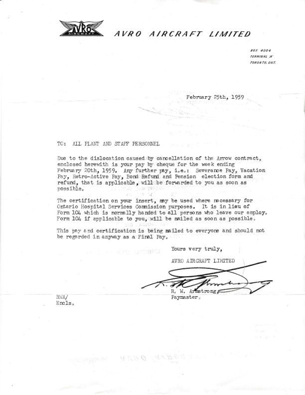 Date / Time Period: 2/25/59 Pages: 1 Author: R.W. Armstrong Publisher: Avro Aircraft