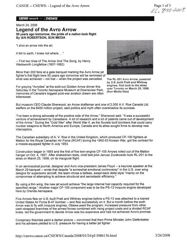 Legend of the Avro Arrow - 50 Years AgoEntry/Object ID