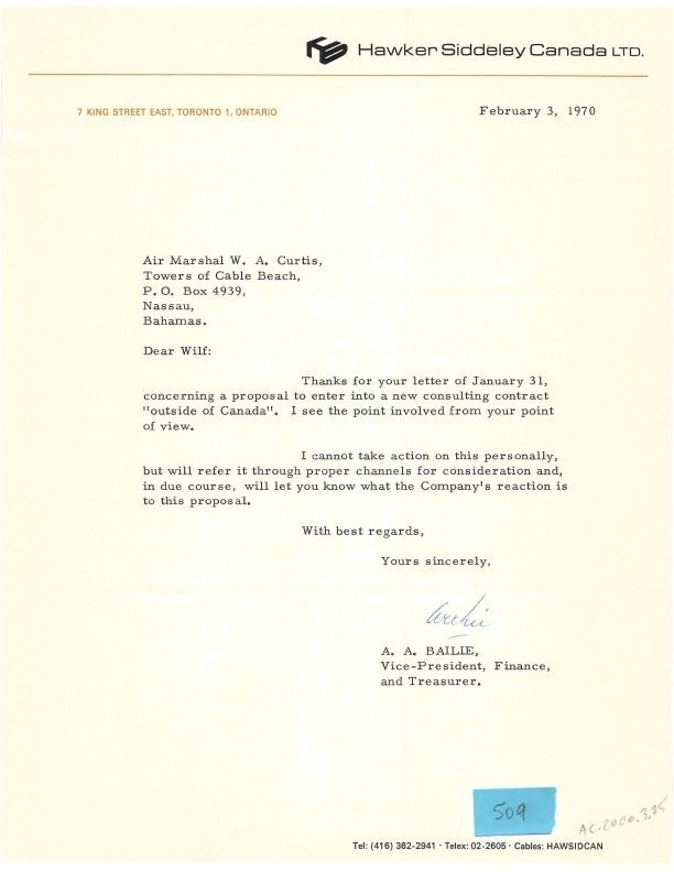 Letter - A.A. Bailie to W.A. Curtis Feb 3, 1970 (attached to AC.2000.3.23, 24, 26-29)