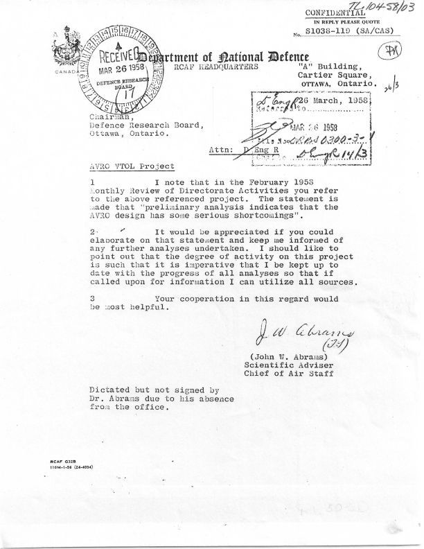 Date / Time Period: 3/26/58 Pages: 1 Author: John W. Abrams-Scietific Advisor, Chief of Air Staff