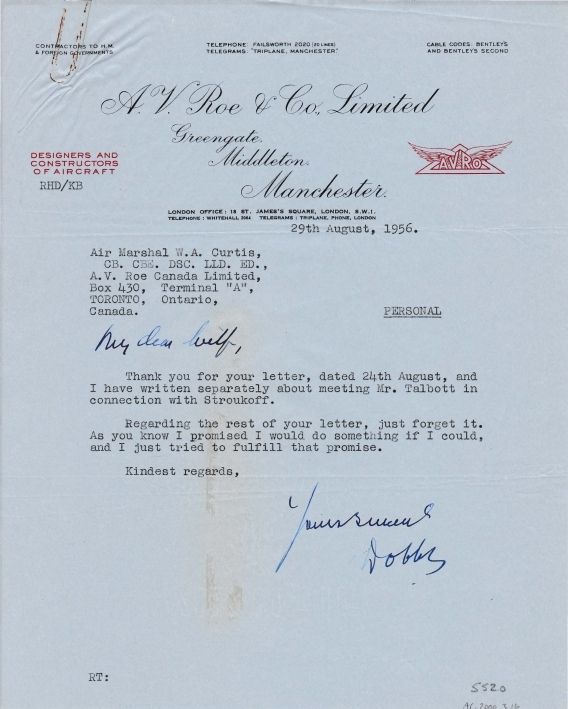 Letter from Roy Dobson to W.A.Curtis