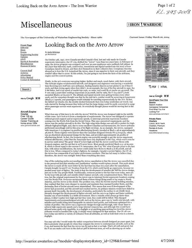Looking Back on the Avro Arrow