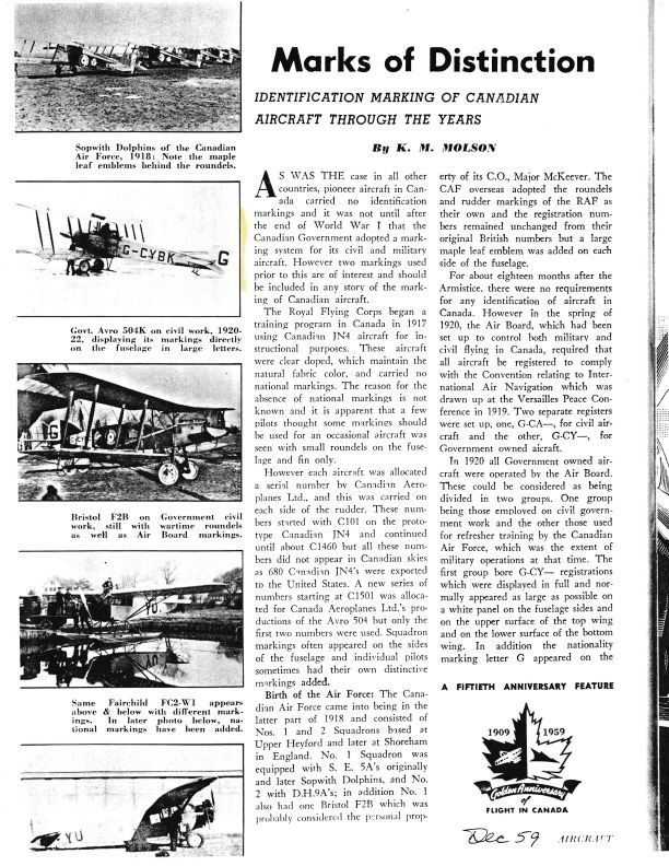 Markings on Canadian aircraft described