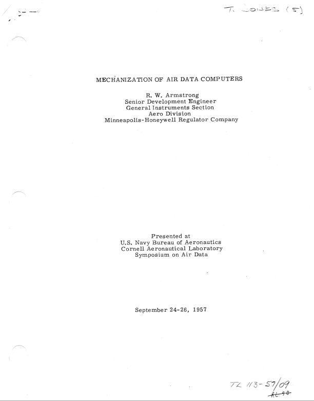 Aero Division General Instruments Section presented at US Navy Bureau of Aeronautics, Cornell Aeronautical Laboratory Symposium on Air Data. Inlcudes a drawing with the CF-105 Arrow