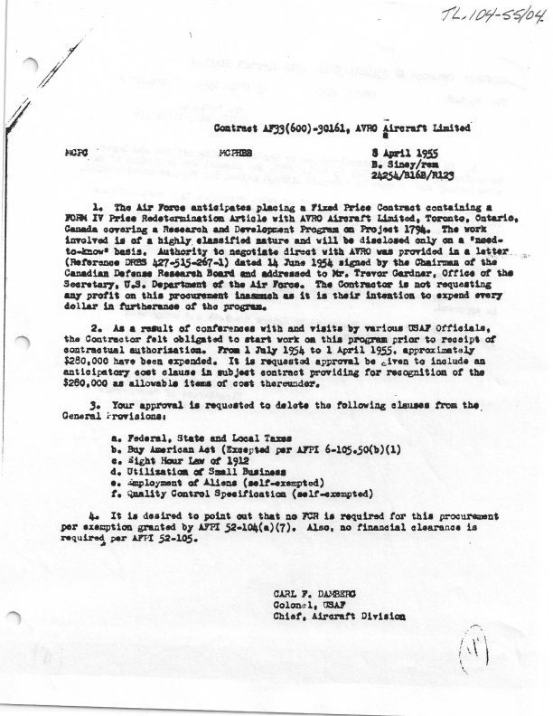 Two memos discussing the parameters of cost structure of Contract AF33(600)-30161 for Project 1794