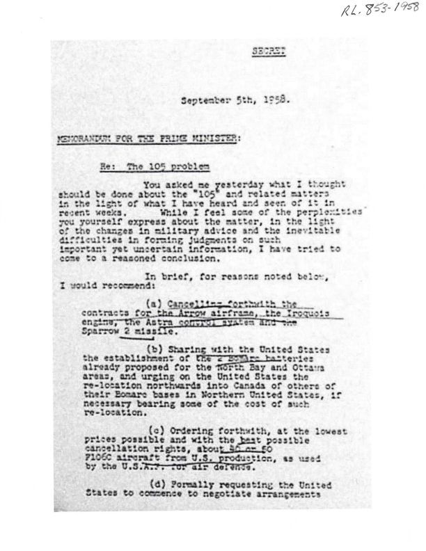 Recommendation to cancel Arrow and Iroquois and buy F-106's, Bomarcs
