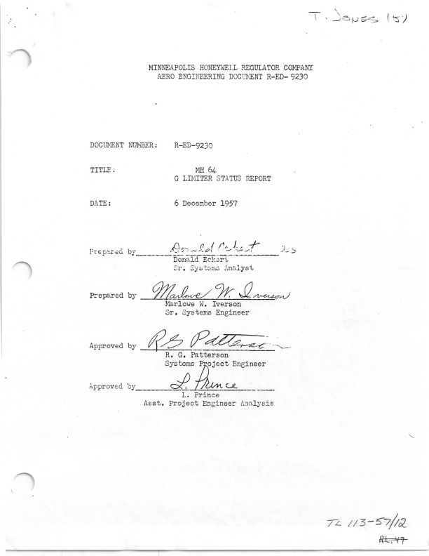 Arrow status report on the pitch acceleration limiter for the MH-64 - Document R-ED-9230. Approved by R.G.Patterson; L.Prince