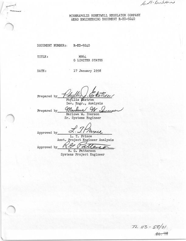 Names include Minneapolis Honeywell staff Phyllis J. Ekstrom, Marlowe W. Iverson, R.G. Patterson, L.T. Prince.
