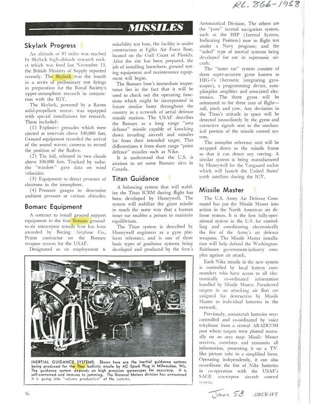 pg 56 Commentary on installation of 1st ground support equipment for Bomarc base in Florida