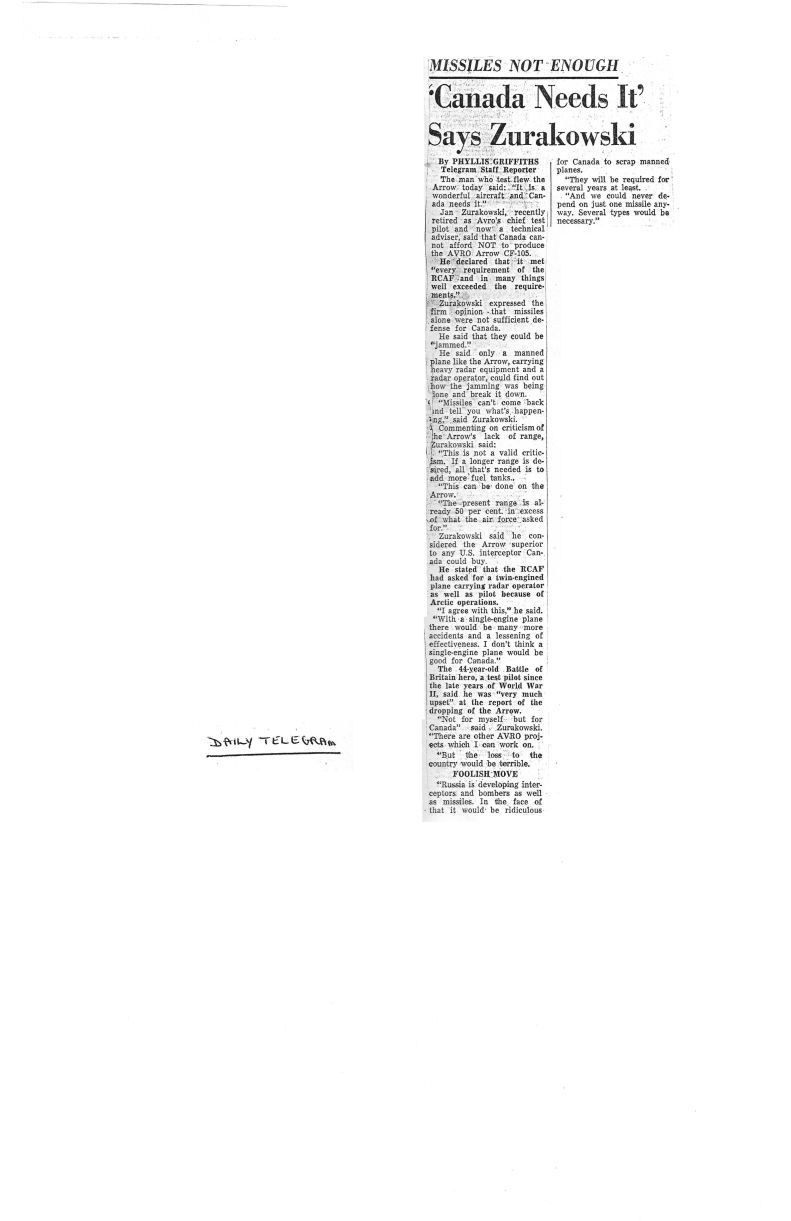 Missiles not enough - Canada Needs It says Zurakowski