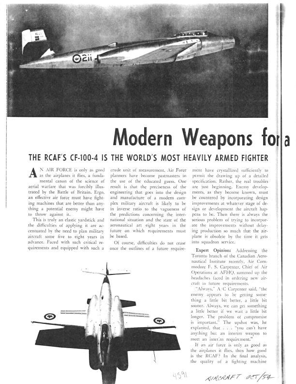 Item found on pages 64,65,66,67,110 The story covers provides an expert opinion of the Avro CF-100 and the Orenda powered Sabre. At the end of the story a paragraph is devoted to the future replacement of the CF-100 by the delta wing CF-105. image of 18211General Notes