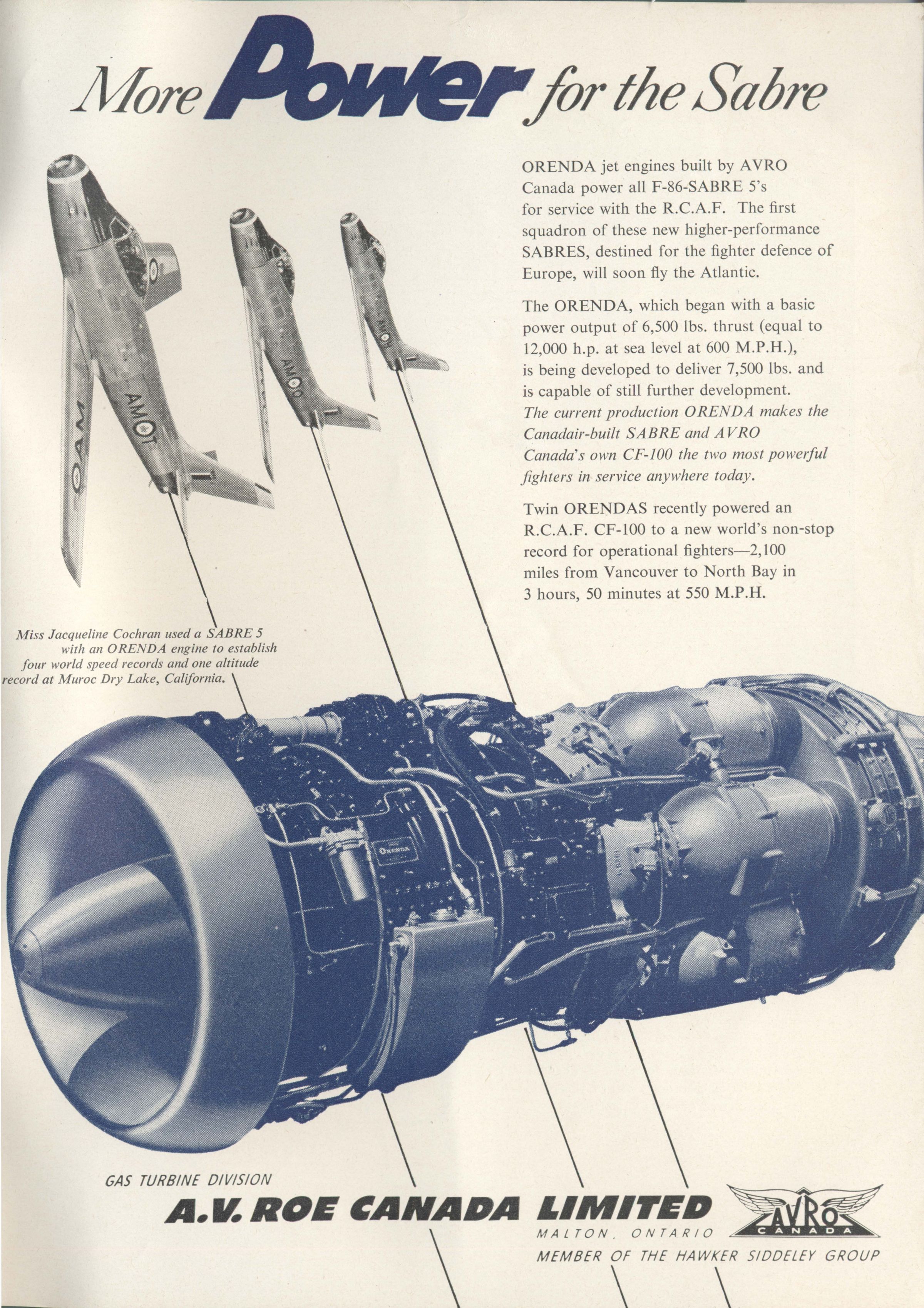 shows 3 Sabre's and an Orenda engine