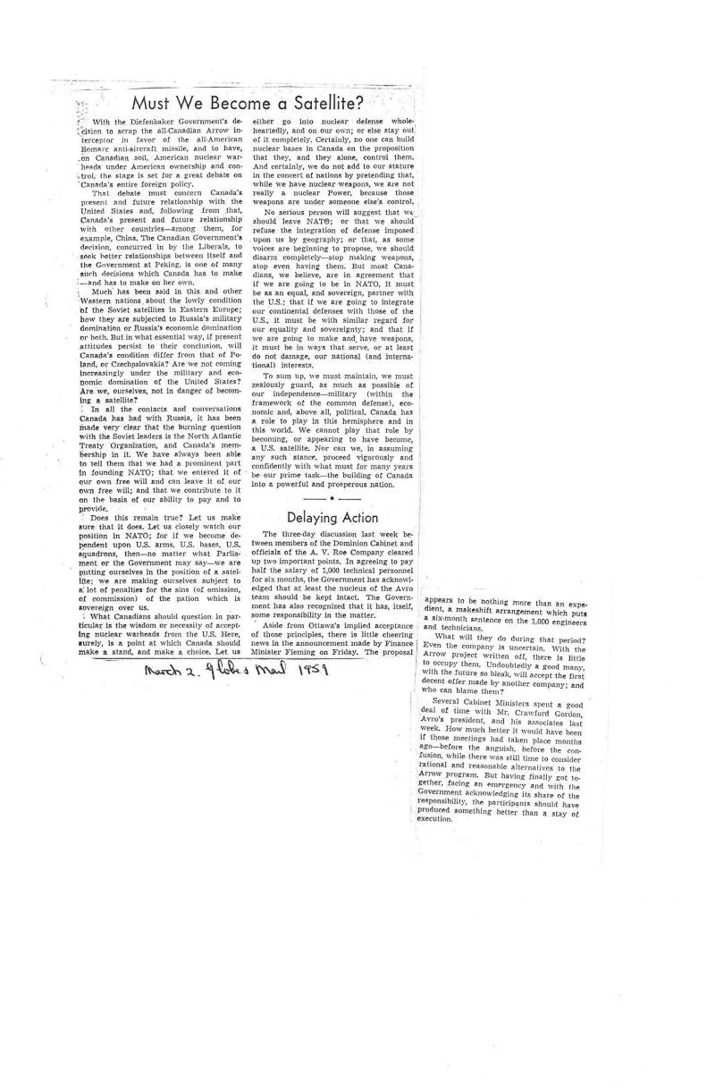 Canada's role, Avro talks.