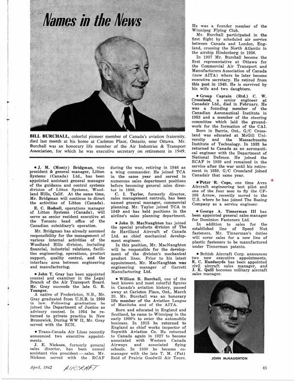 pg 45 former Avro test pilot Peter Cope joined Boeing Aircraft as a service engineer.