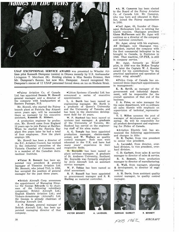 pg 38 D. Reynolds former assistant manager of Avro Aircraft now plant services manager with Litton Systems (Canada)