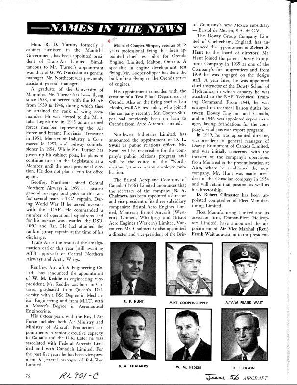 pg 76 - Michael Cooper-Slipper becomes Chief Test Pilot (with photo)