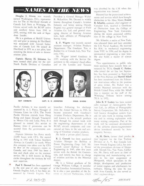 pg 100 - Paul Y. Davoud appointed Sales Manager Orenda announced by Walter R. McLachlan and A.M. Davis resigns as Chief Production EngineerGeneral Notes