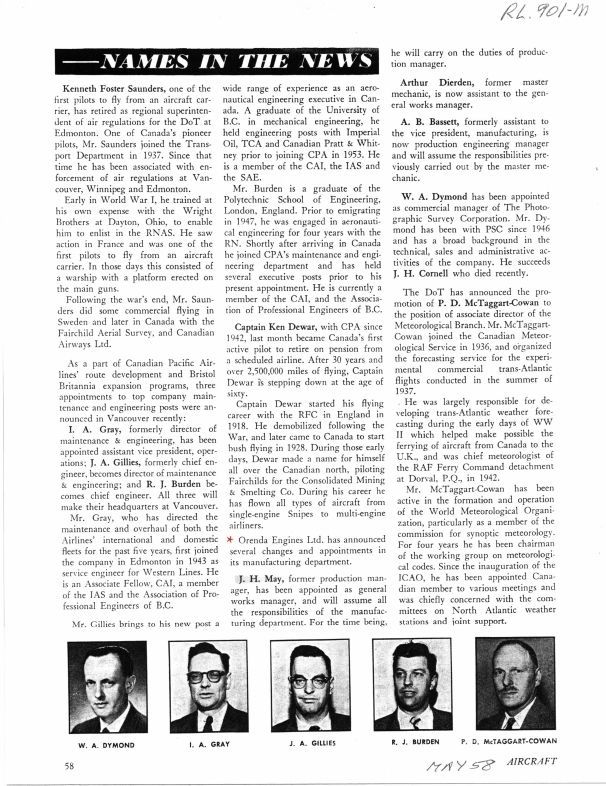 pg 58 J.H. May becomes General Works Manager, Arthur Dierden becomes his assistant, A.B. Bassett becomes Production Engineering ManagerGeneral Notes
