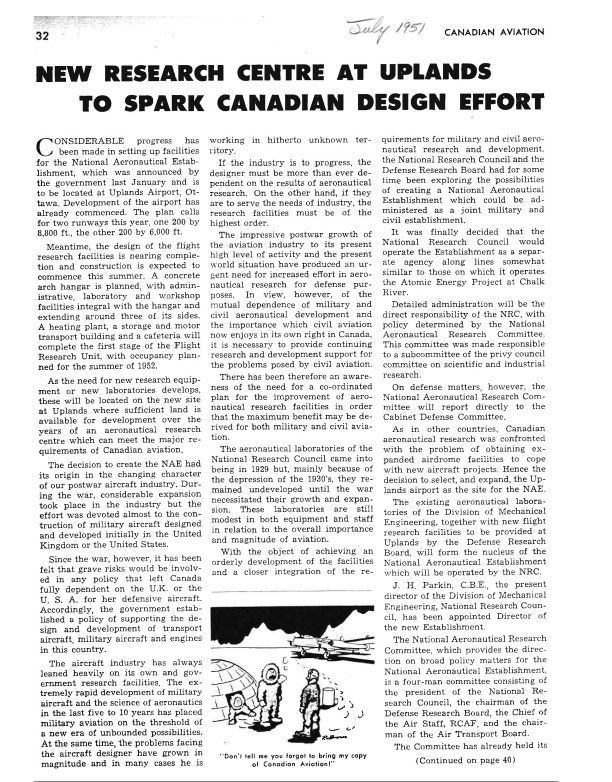 National Aeronautical Establishment createdPublication Details