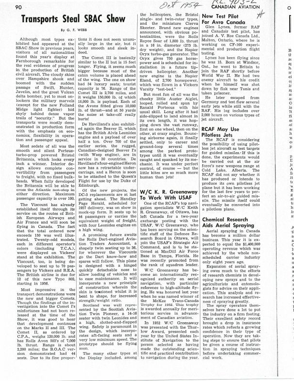 pg 90 - Glen Lynes hired as CF-100 pilot