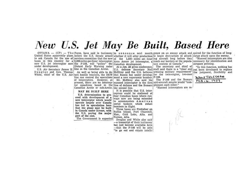 Shortly before Black Firday, USAF plans to ask Canada for permission to base a supersonic interceptor at 4 Canadian bases.General Notes