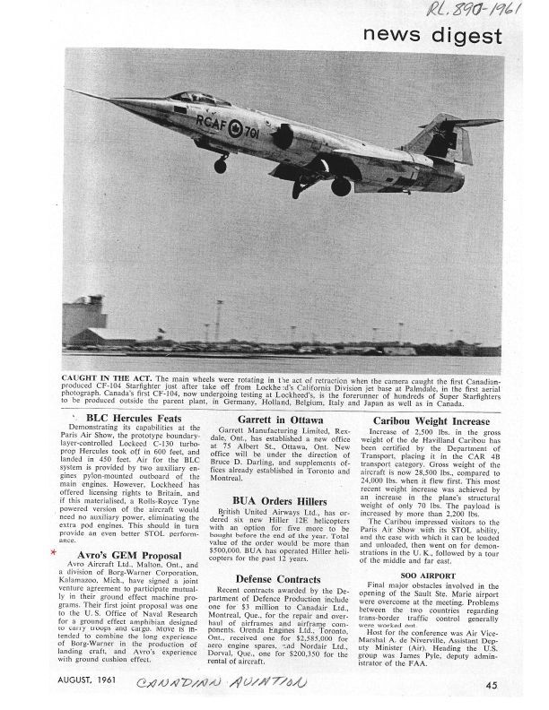 pg 45 Avro's GEM proposal - Ground Effect Machine (Avrocar) Joint venture with Borg-WarnerPublication Details