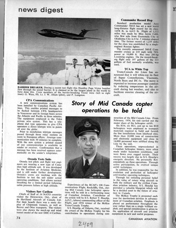 pg 74,77 Orenda Test Suits - Orenda test pilots and flight test engineers are wearing a new type of high altitute suit. McCurdy Award to Orenda VP - Earle K. Brownridge, VP Manufacturing of Orenda wins 1957 awardPublication Details