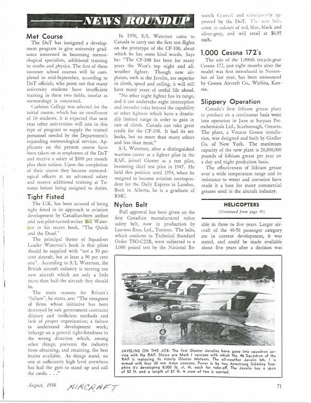 pg 71 - Tight Fisted - Bill Waterton, details on his book "The Quick and the Dead" and comments on the CF-100