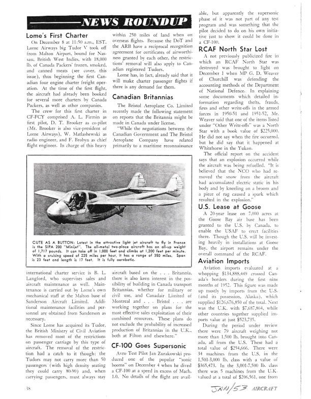 pg 38 CF-100 goes supersonic -CF-100 piloted by AVRO test pilot Jan Zurakowski created a sonic boom on December 4, 1952 when he dived a CF-100 in excess of Mach 1.0. The pilot did this on his own initiatve just to show it could be done in a CF-100.General Notes