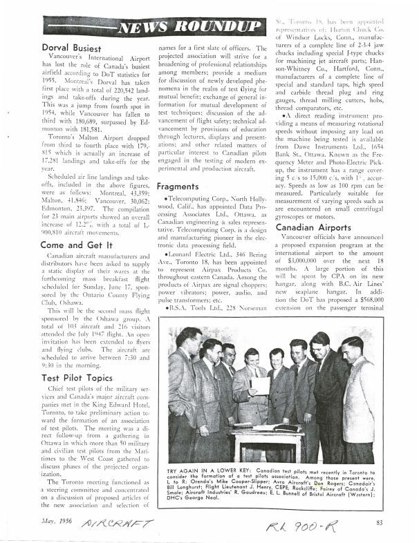pg 83 - Try again in a lower key: Orenda's Mike Cooper-Slipper and Avro's Don Rogers attend test pilots meeting considering the formation of a test pilots association. with photoGeneral Notes