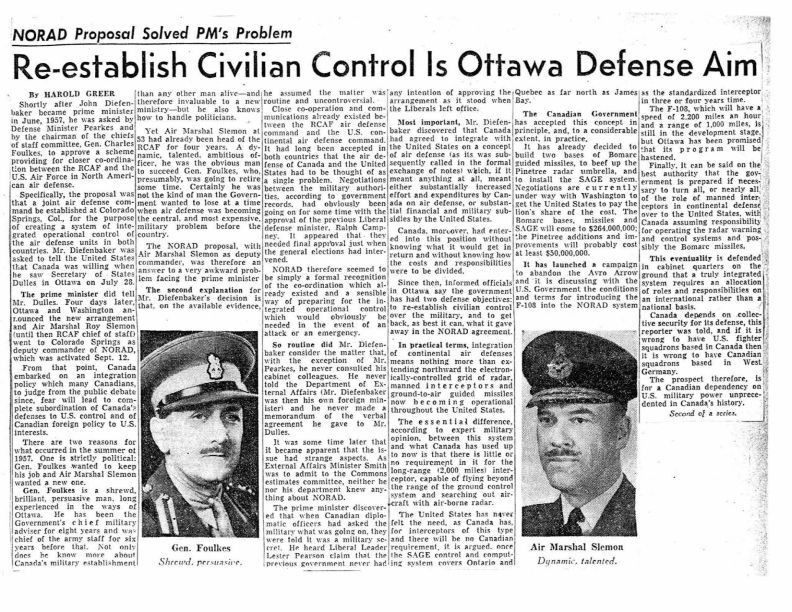 NORAD Proposal solved PM's problem - Re-establish civilian control is Ottawa Defence Aim