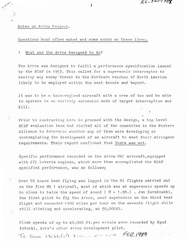 Notes on Arrow Project. Questions Most often Asked and some notes on these items